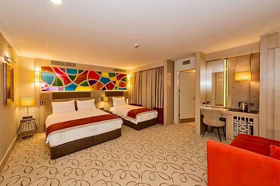 Providing free toiletries, this family room includes a private bathroom with a walk-in shower, a bath and a hairdryer. The air-conditioned family room provides a flat-screen TV with cable channels, a private entrance, soundproof walls, a mini-bar as well as city views. The unit offers 3 beds.